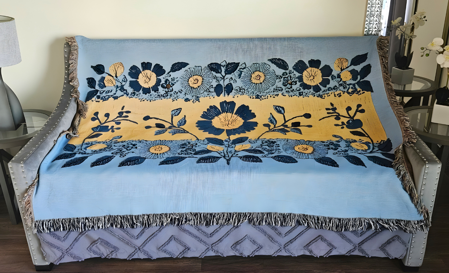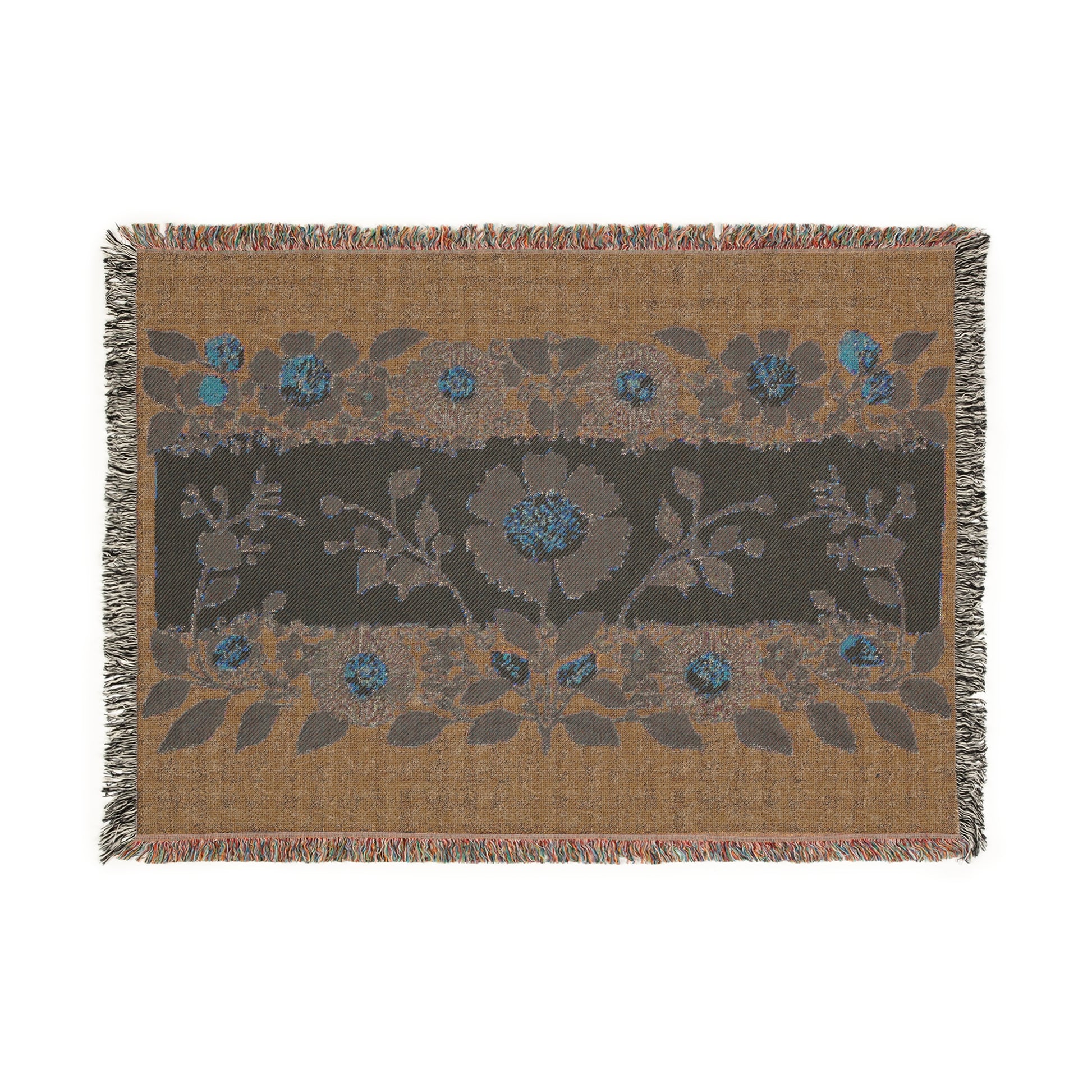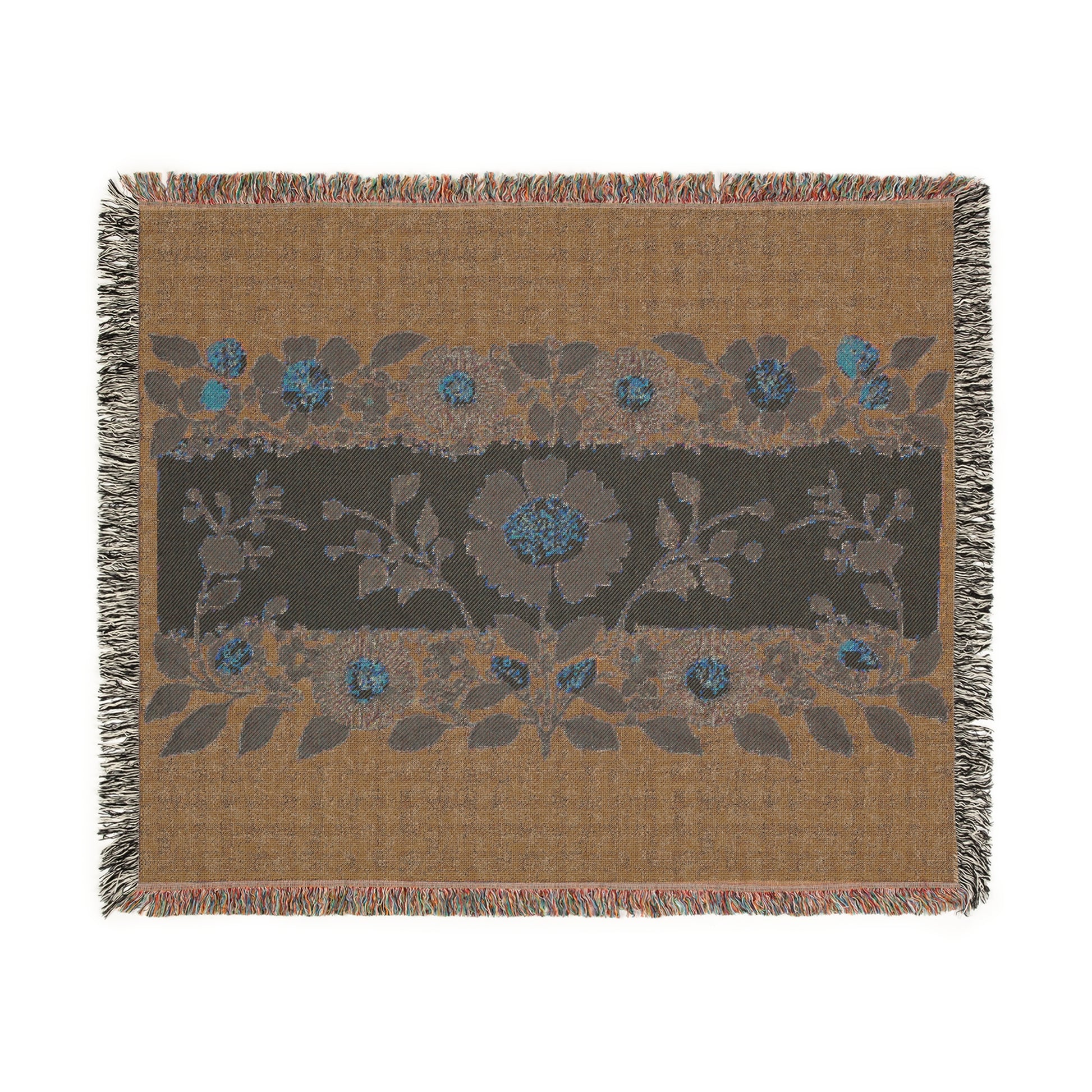 Light Blue Woven Blanket-Floral Heritage